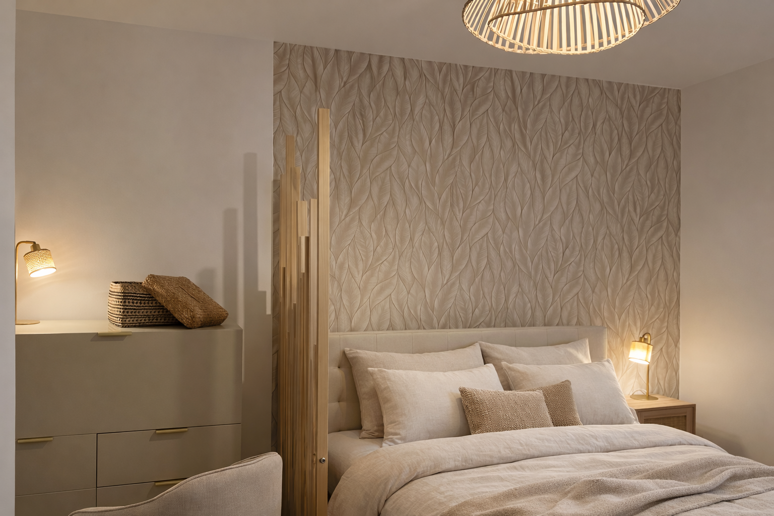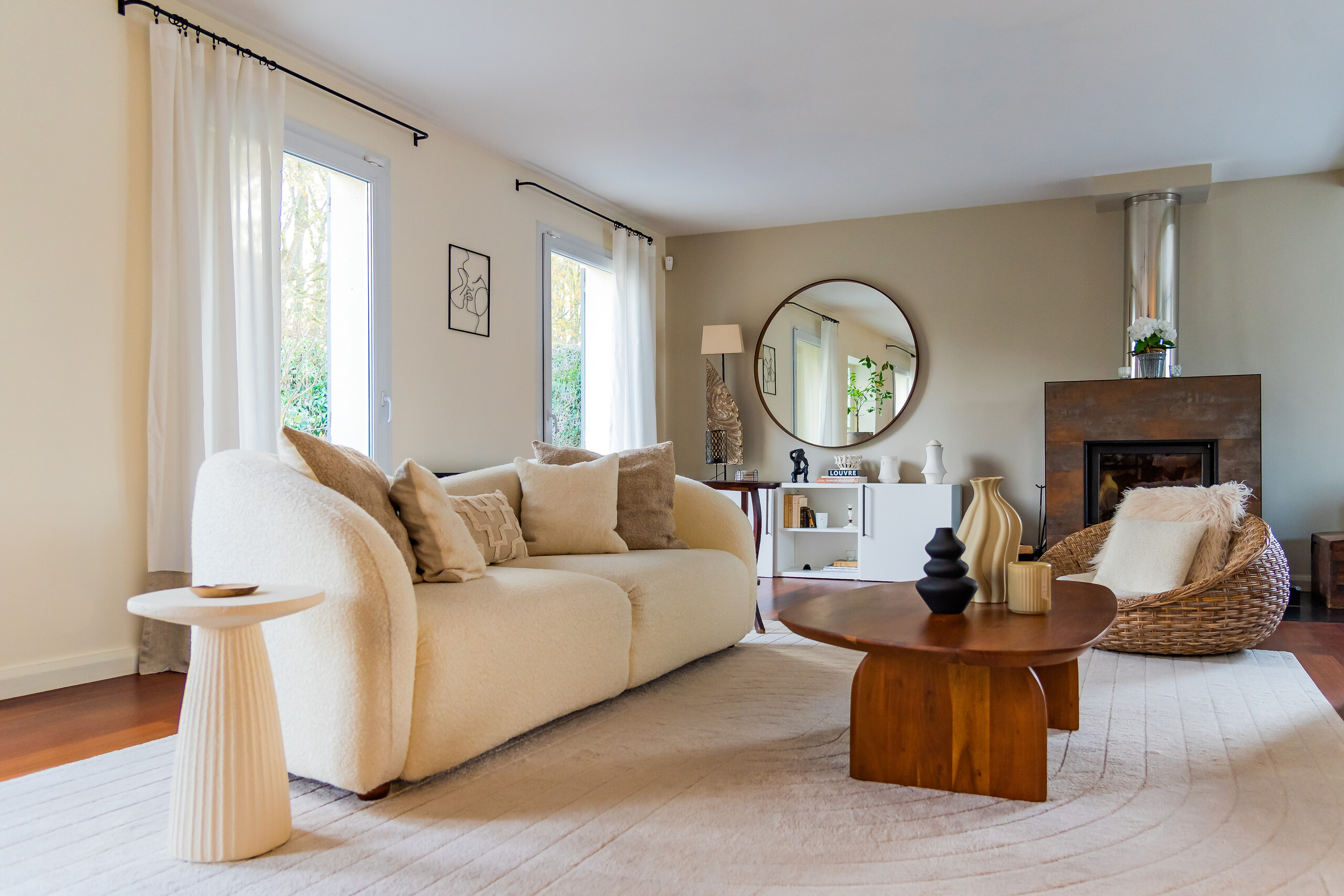 L’ambiance retenue s’inspire des salons des années 50, revisités dans une écriture contemporaine :